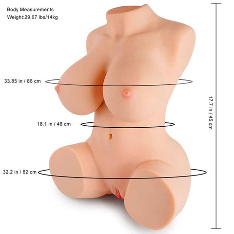 • Key Attributes: Almost life size at 29lbs, with large realistic silicone filled breasts and well crafted anal and vaginal channels.